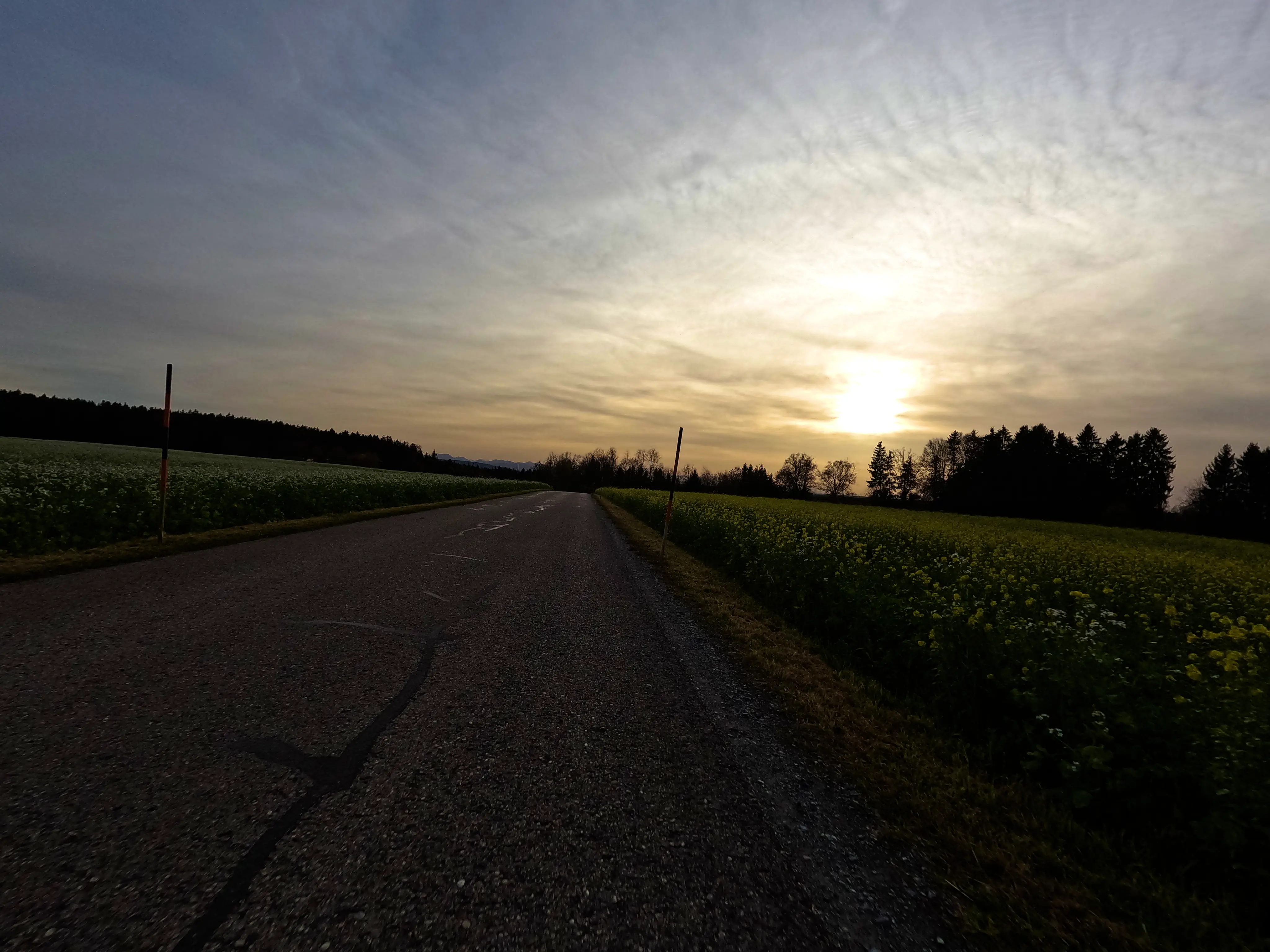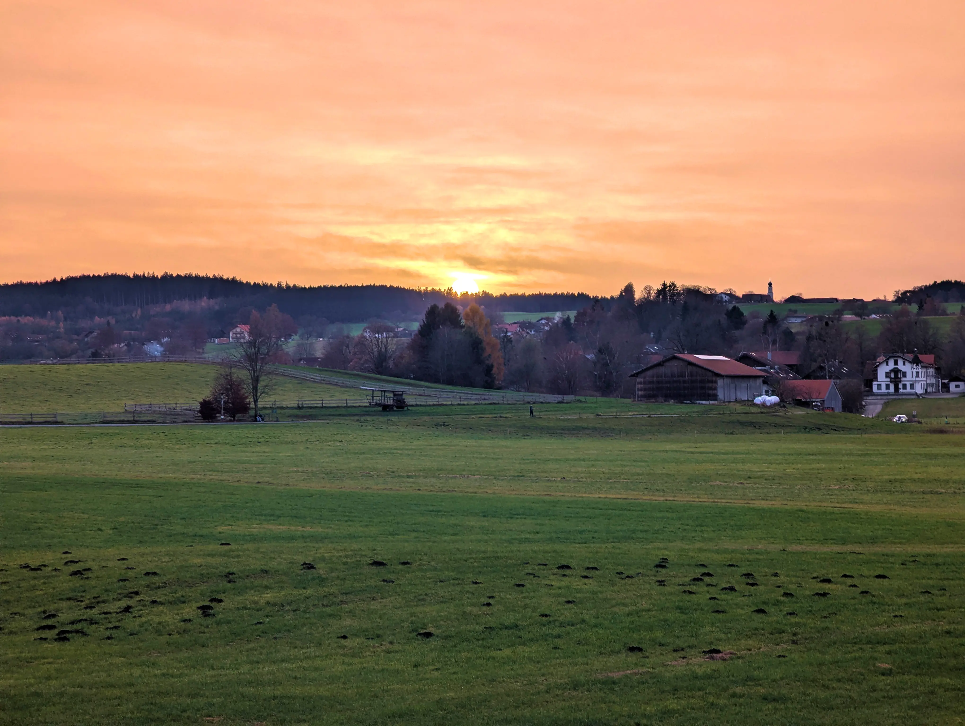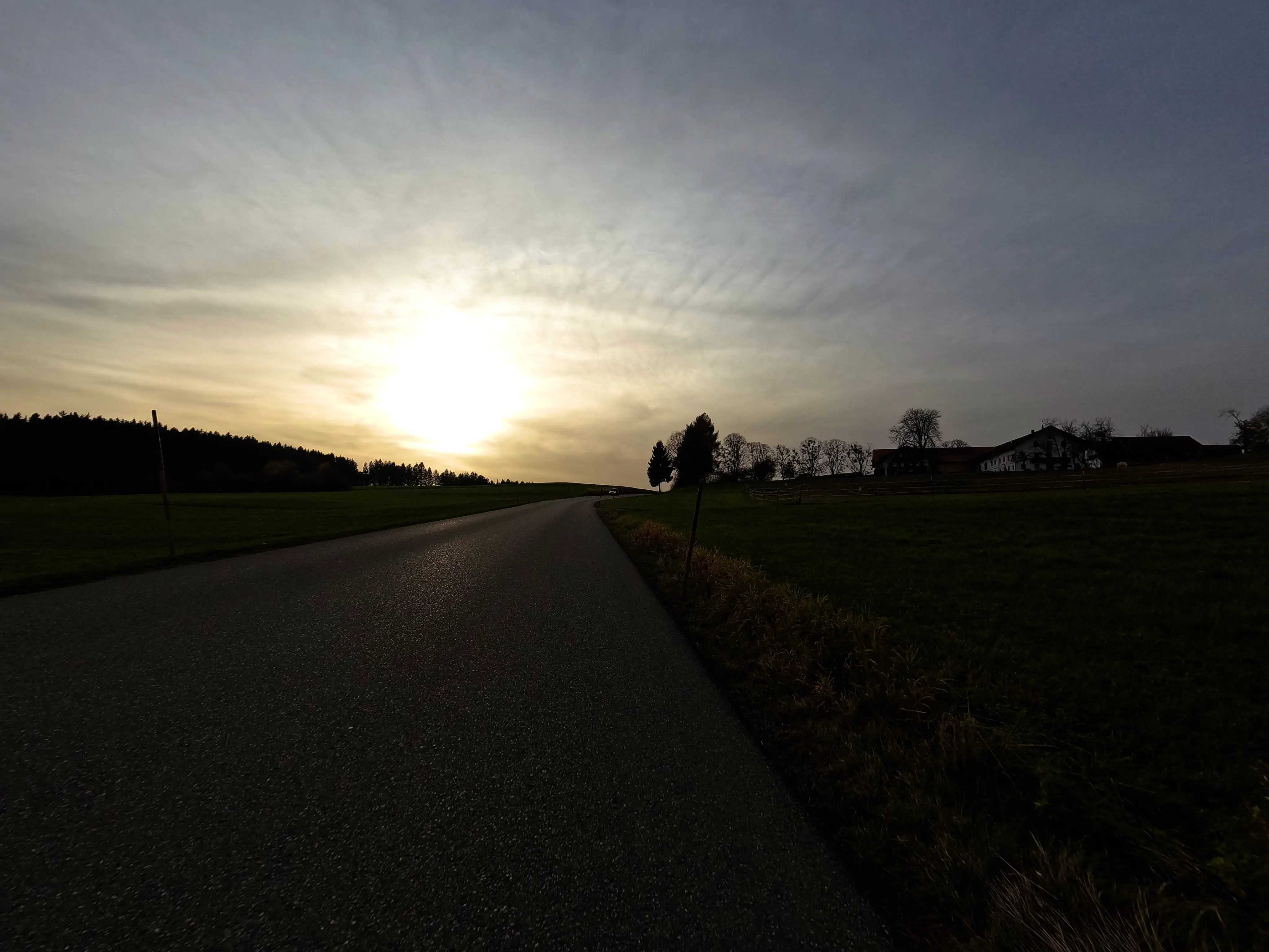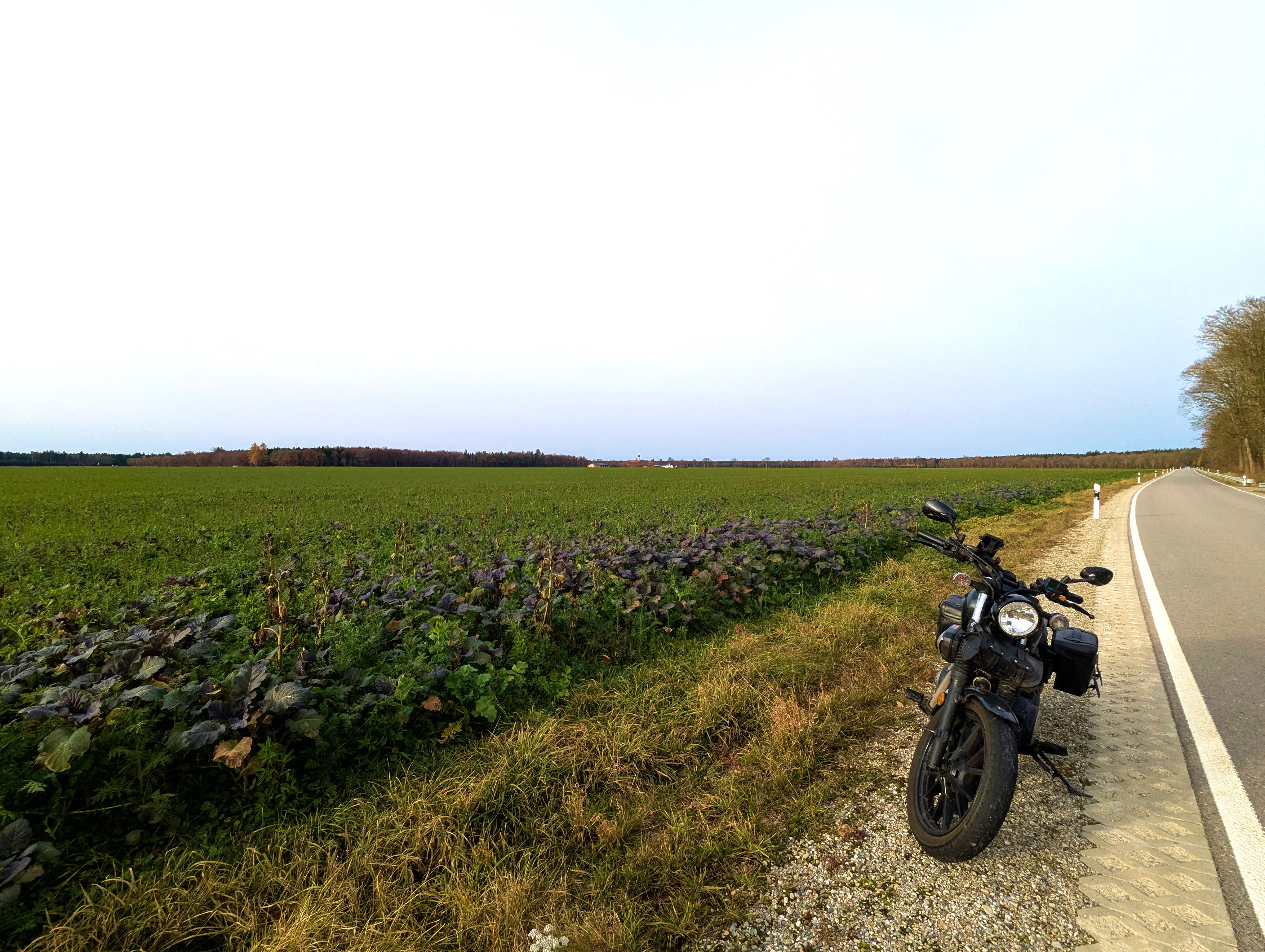 Feldkirchen war dann auch der südlichste Punkt, inzwischen war es nach 16 Uhr, und demnächst würde die Sonne wohl untergehen. Außerdem fiel in der langsam einsetzenden Dämmerung auf, dass mein Abblendlicht den Geist aufgegeben hatte. Um gesehen zu werden, fuhr ich ab hier also mit Fernlicht - den Gegenverkehr freute es. Über Unterlaus ging es nach Glonn, von hier aus dann ein letztes Mal für die Saison 2025 über die Hausstrecke nach Moosach und Zorneding. Natürlich gab es auch hier noch die ein oder andere Gelegenheit für ein paar schöne Fotos.