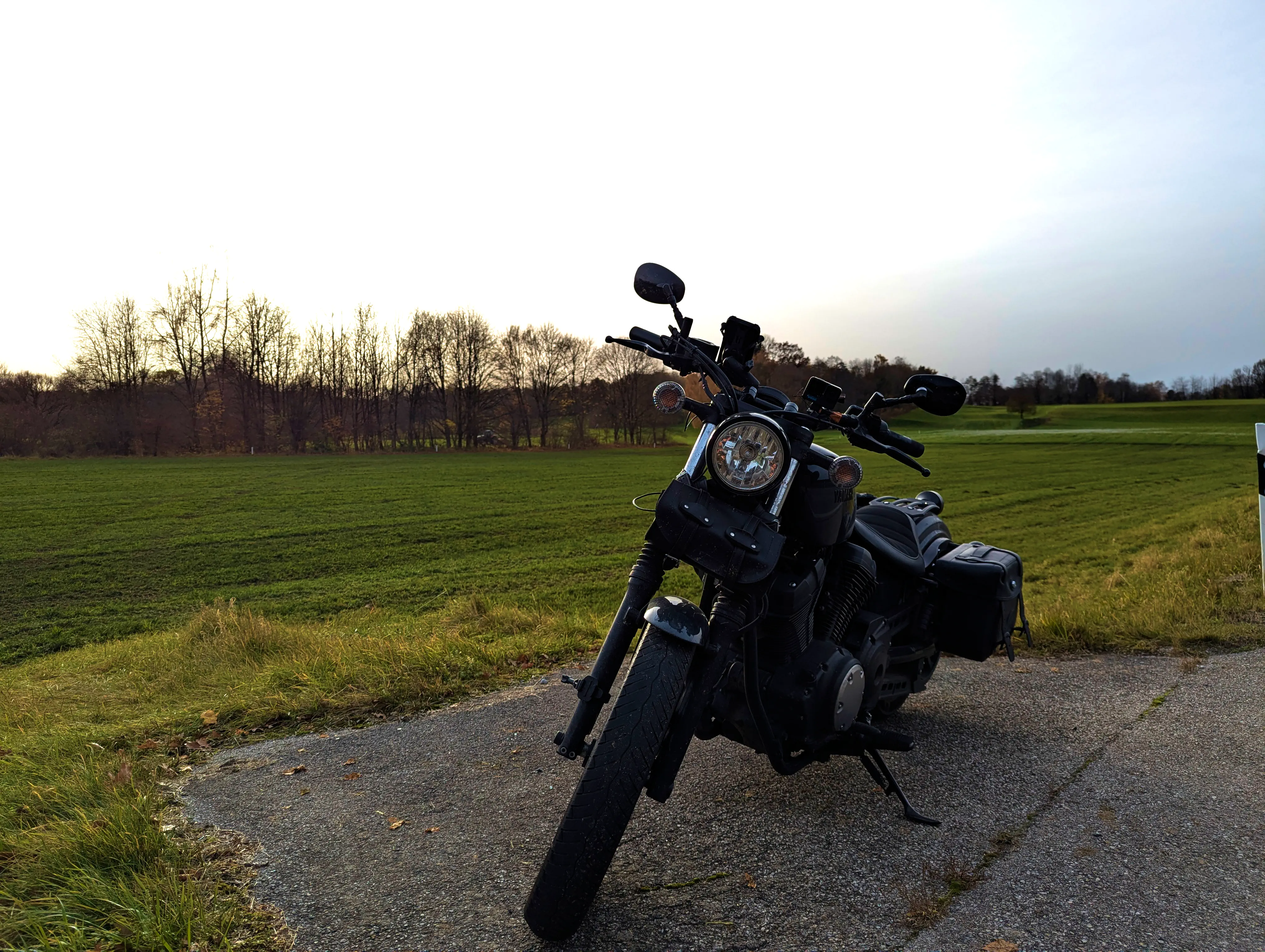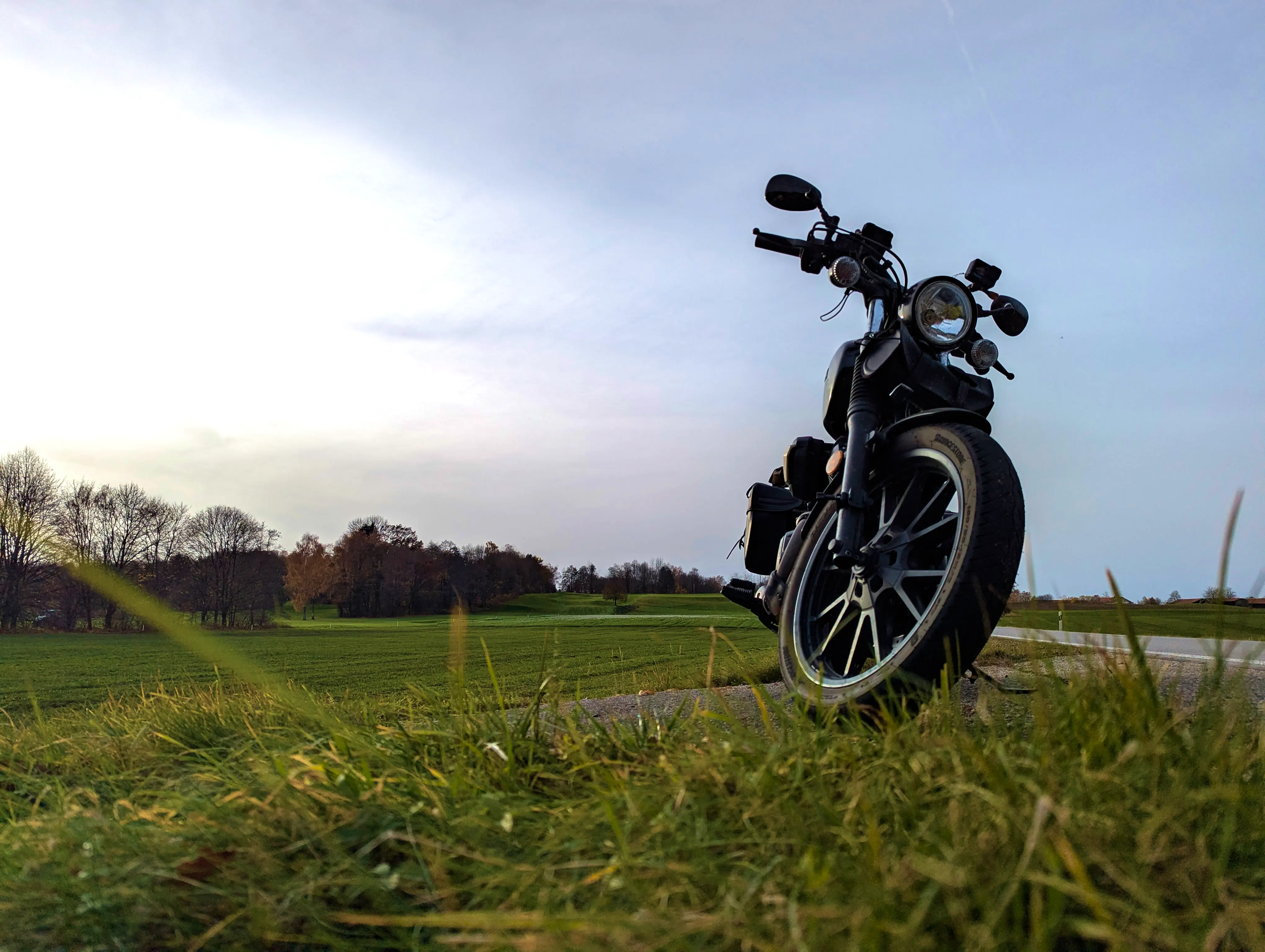 Den Arbeitstag im Home-Office ließ ich äußerst pünktlich ausklingen, anschließend zog ich mir gleich die Motorradklamotten an und ging zur Bolt. Motor an, los geht’s! Um kurz vor 15 Uhr fuhr ich los, die Sonne stand da bereits sehr tief.