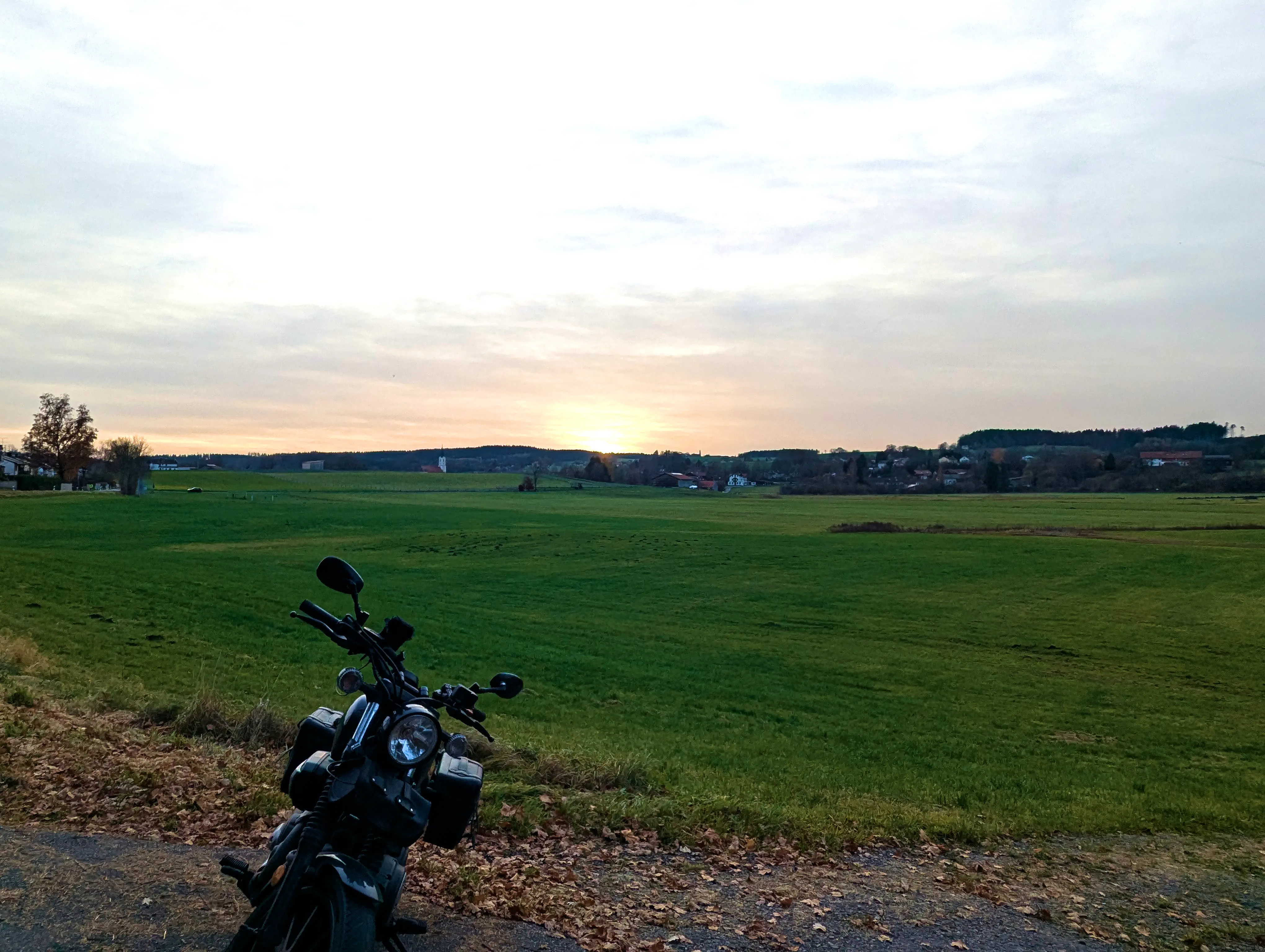 Es ging nun Richtung Aying und weiter nach Süden, über Kleinhelfendorf bis auf Höhe von Feldkirchen-Westerham. Kurz vor Grubmühle hielt ich erneut an, die Sonne stand schön tief hinter dem Motorrad. Natürlich sind auch hier wieder ein paar Fotos entstanden.