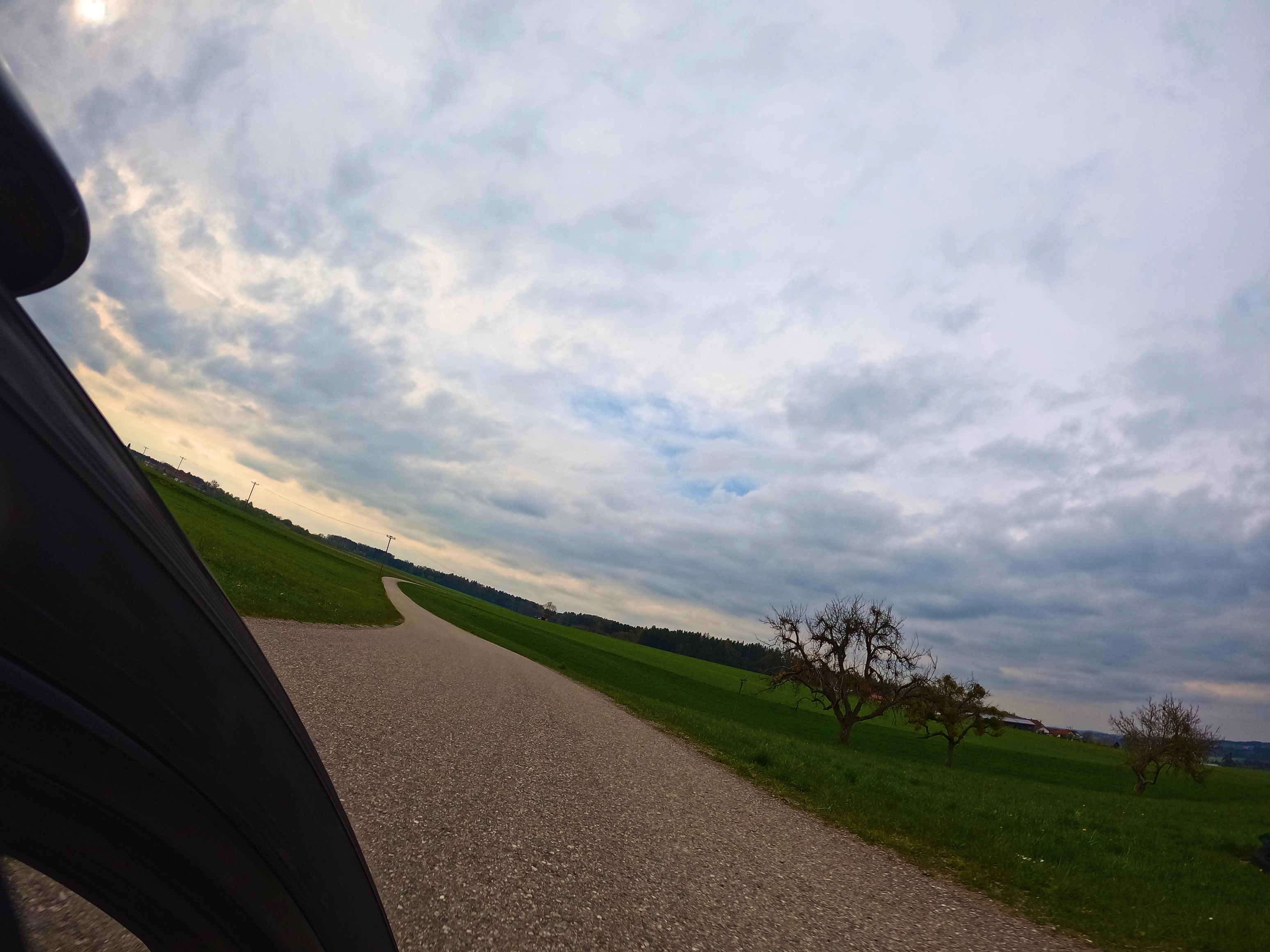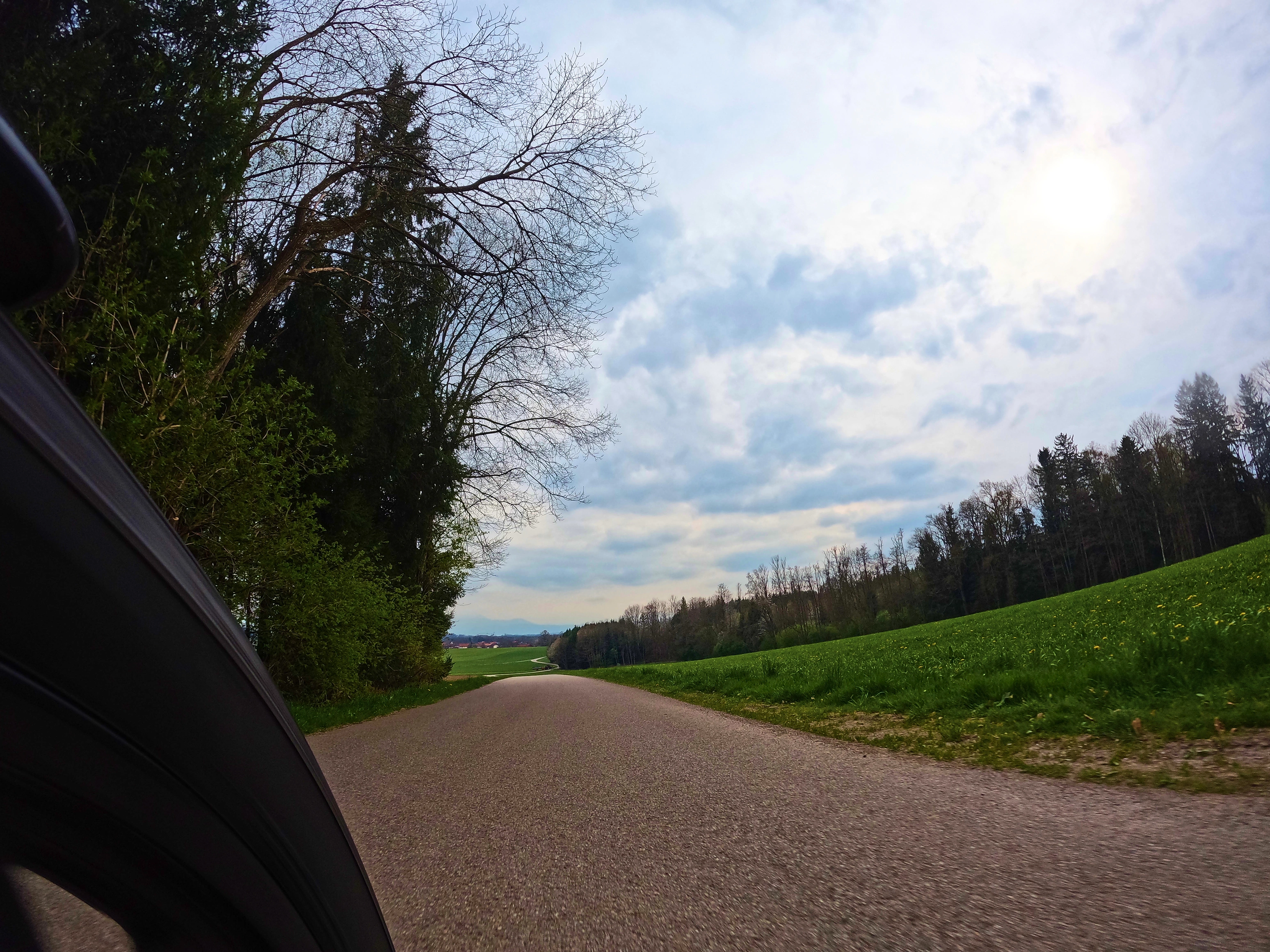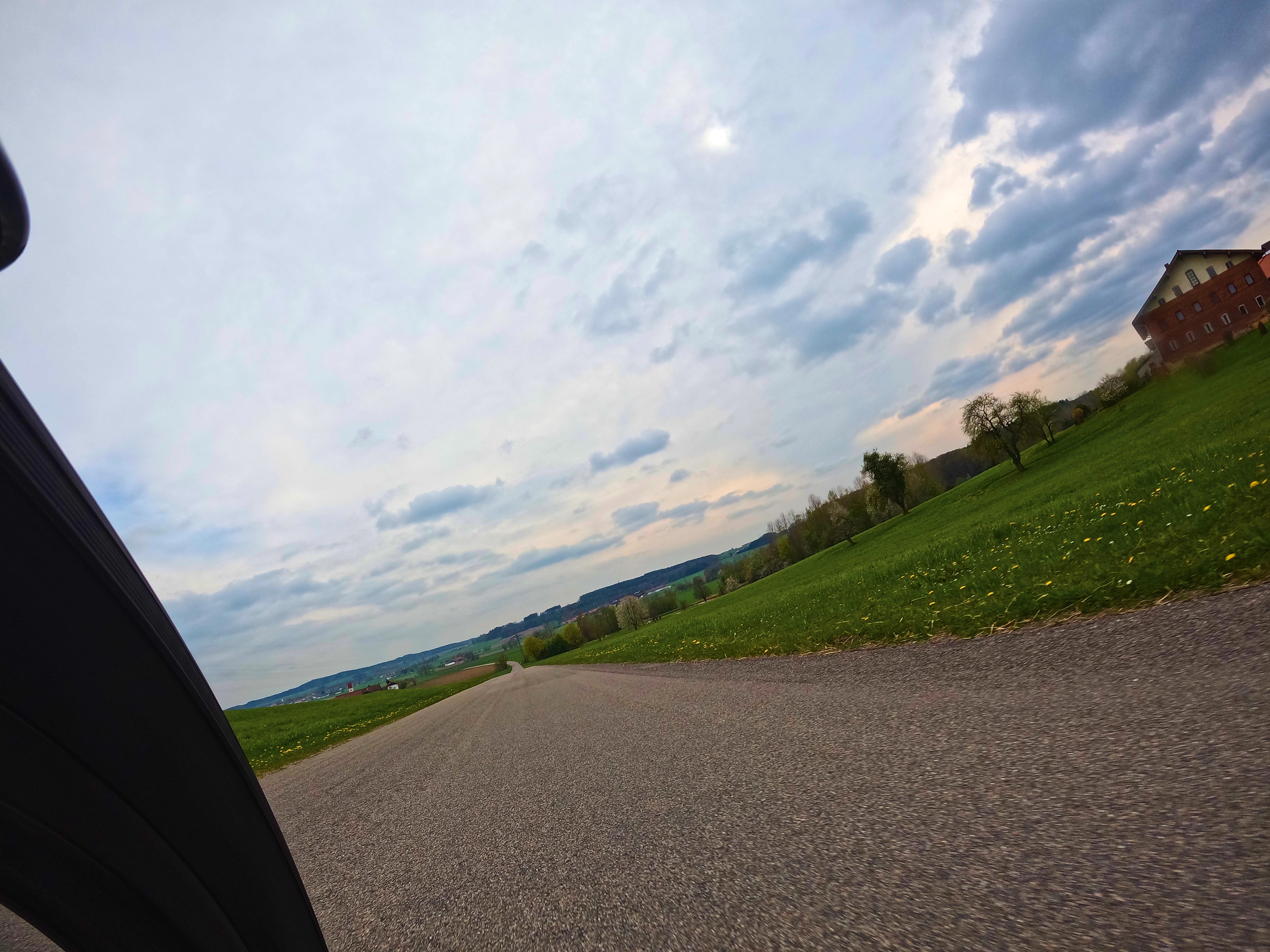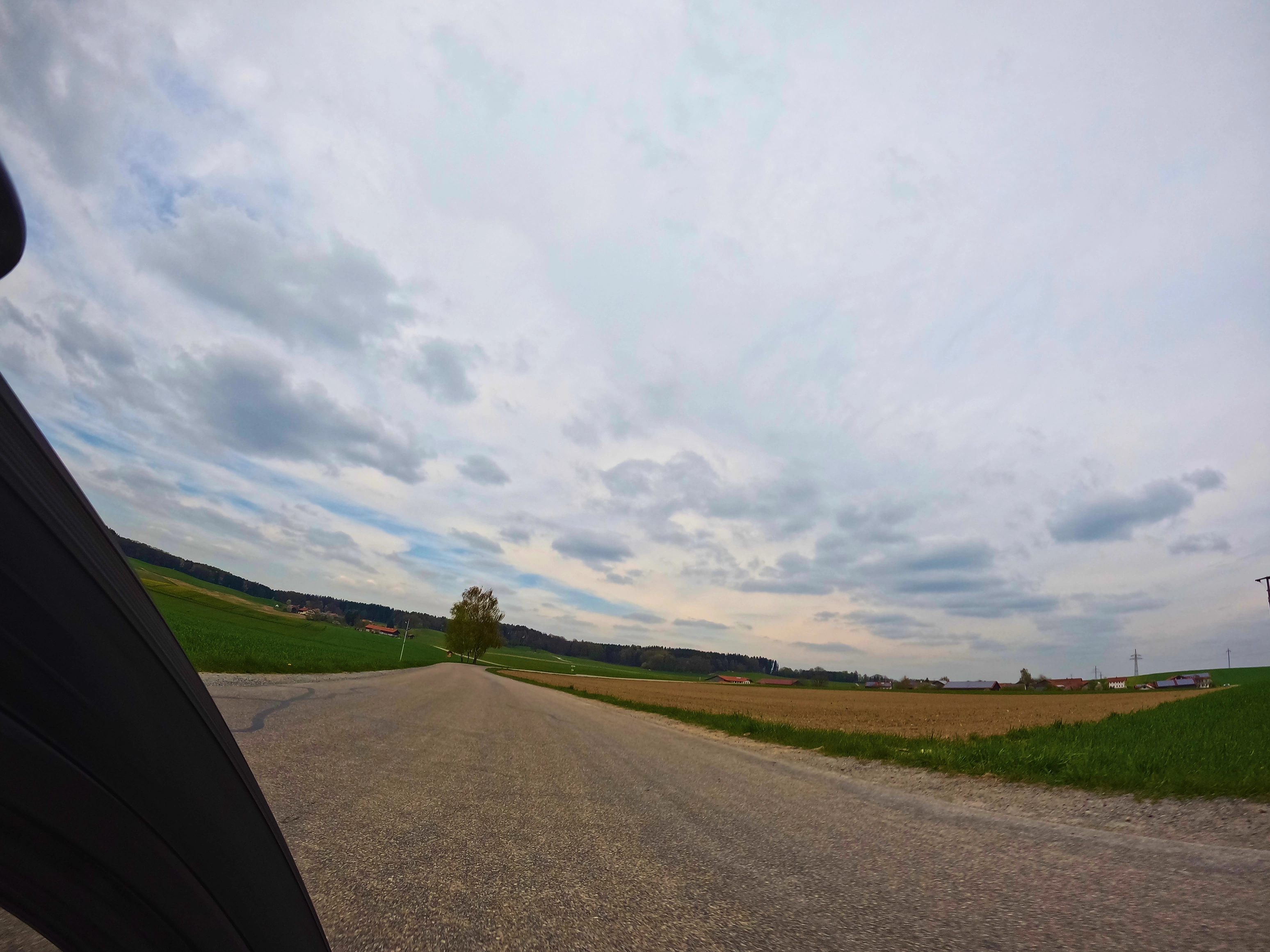 Da die Temperaturen nicht so hoch stiegen, wie ich erhofft hatte, kühlte ich auch langsam aus. Aber weit von zu Hause war ich nicht mehr entfernt, und den Rest der Tour versuchte ich wie bisher auch auf kleinsten Straßen zurückzulegen. Es folgen noch ein paar Bilder der GoPro, die wie ich denke ganz gut die Größe der befahrenen Straßen verdeutlichen.