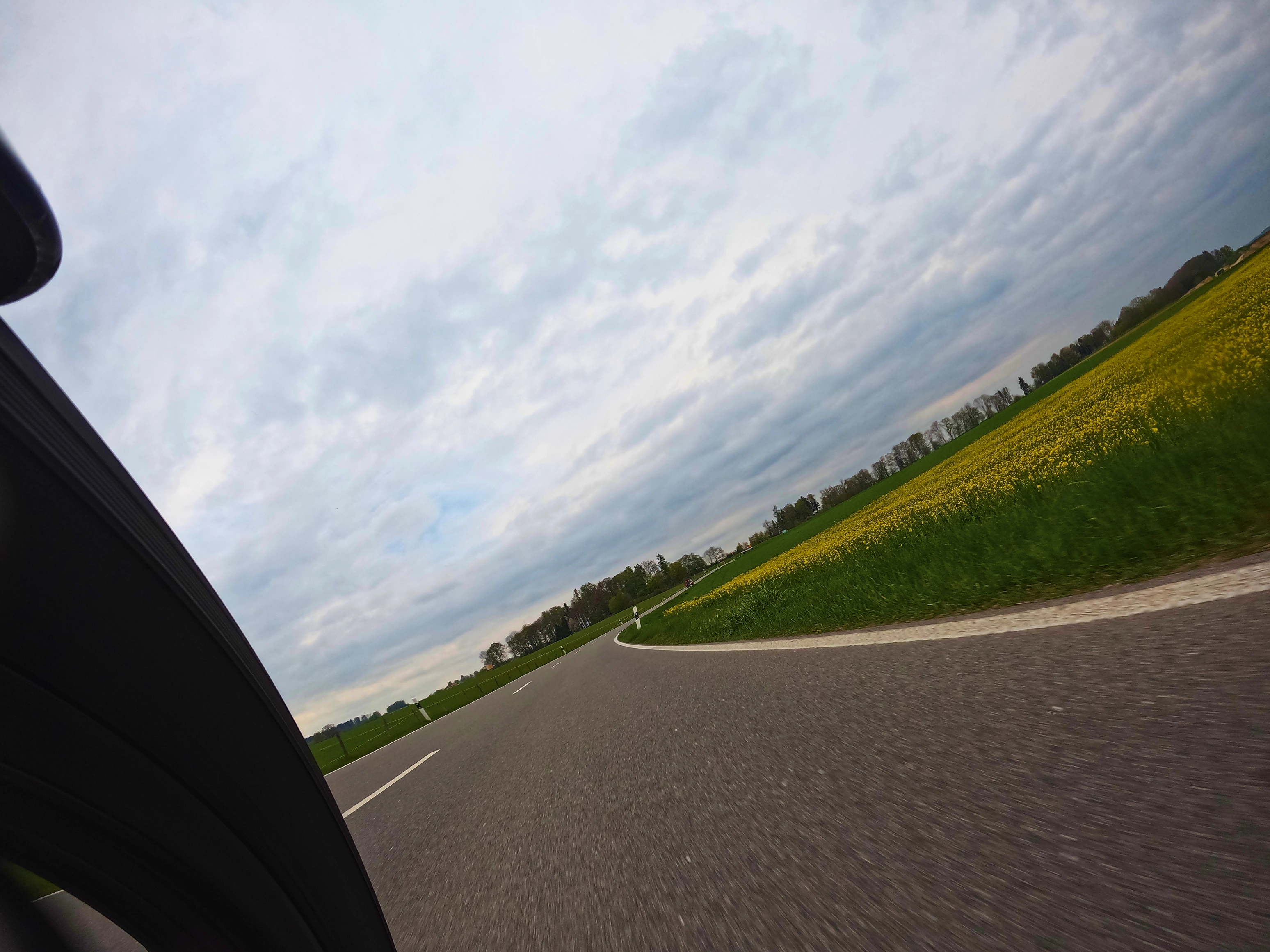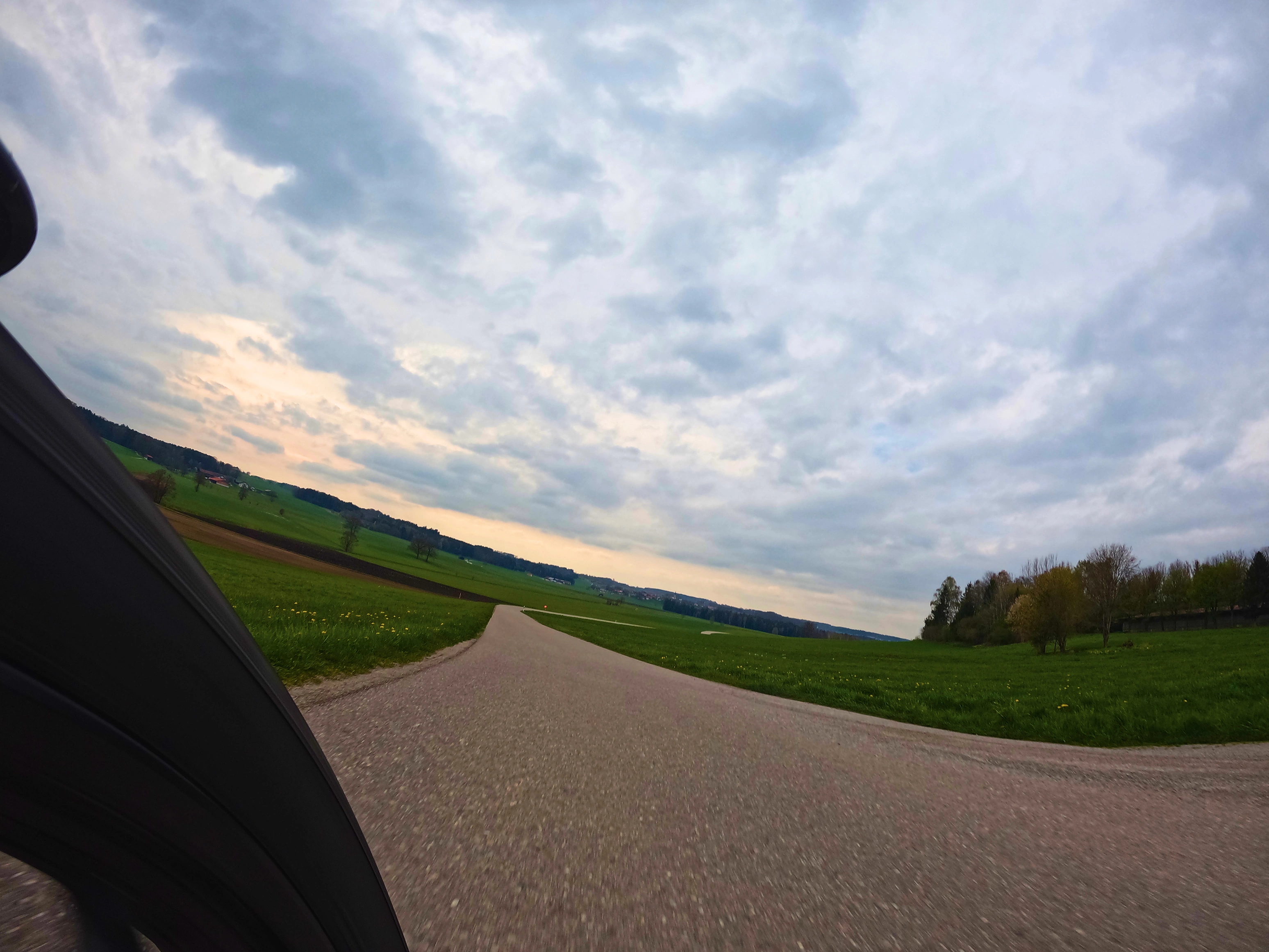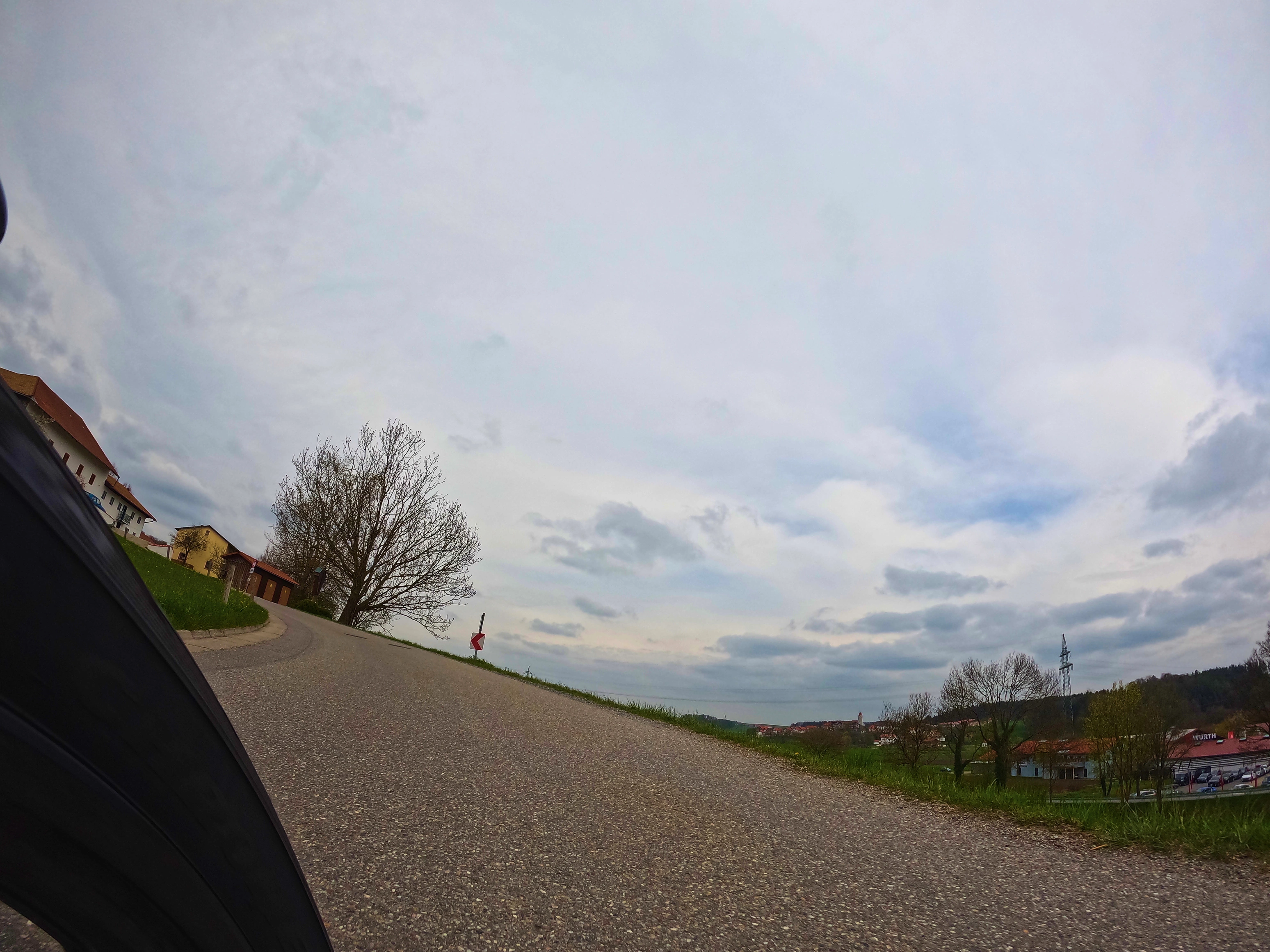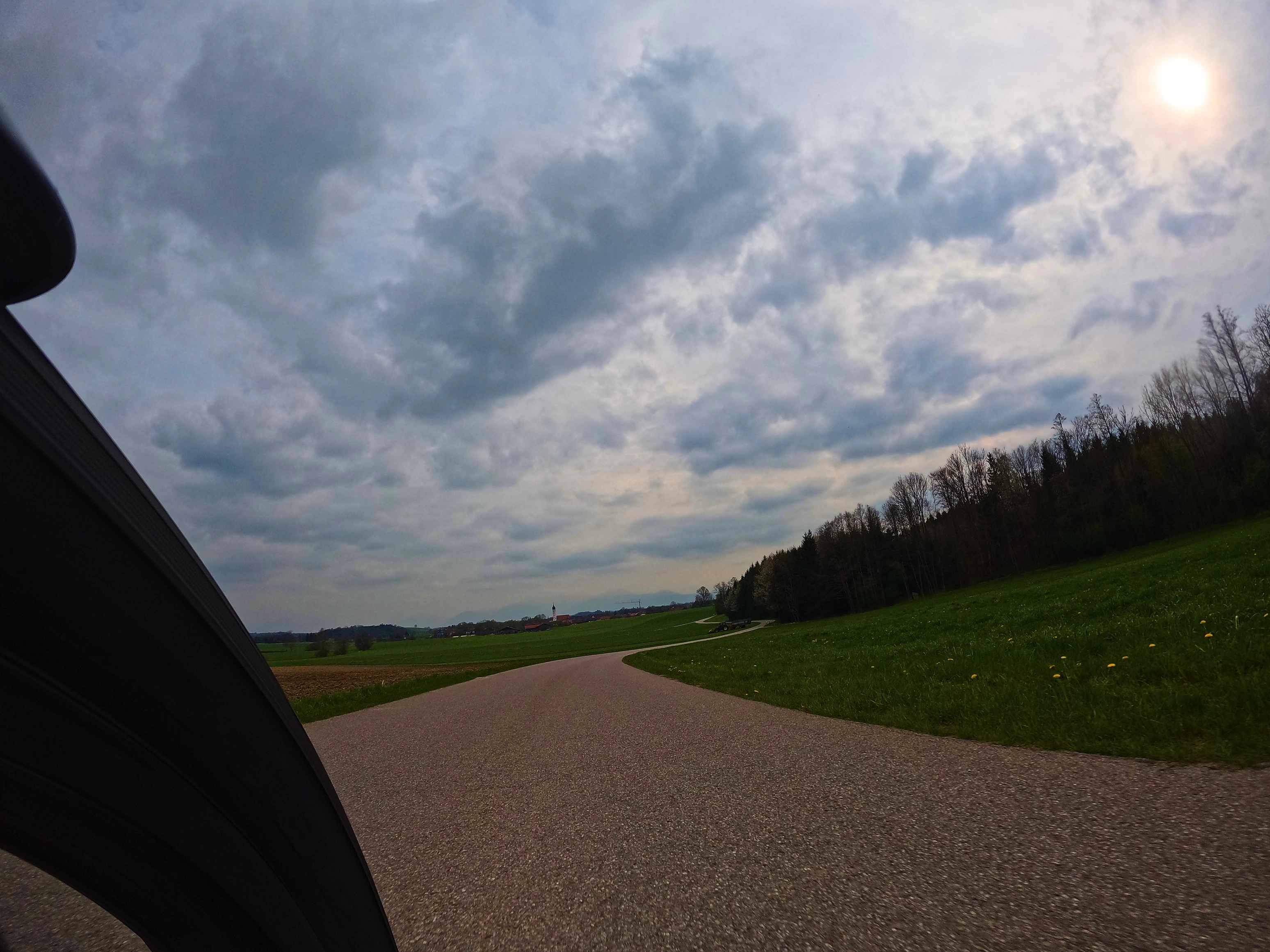 Da die Temperaturen nicht so hoch stiegen, wie ich erhofft hatte, kühlte ich auch langsam aus. Aber weit von zu Hause war ich nicht mehr entfernt, und den Rest der Tour versuchte ich wie bisher auch auf kleinsten Straßen zurückzulegen. Es folgen noch ein paar Bilder der GoPro, die wie ich denke ganz gut die Größe der befahrenen Straßen verdeutlichen.