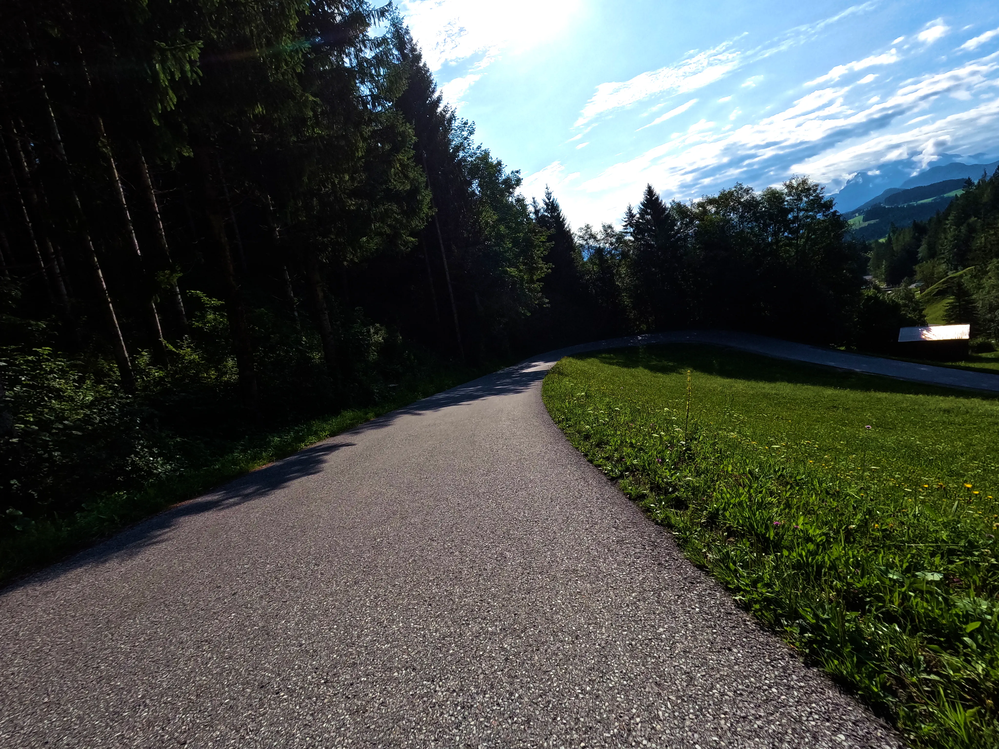 In Saalfelden war der Verkehr etwas fordernd, doch irgendwann war auch der Ort durchquert. Für mich ging es weiter in Richtung Westen, das nächste Ziel sollte der Grießenpass sein. Dieser liegt recht unauffällig ebenfalls an der B164. Auf dem Weg dorthin hatte ich kurz Sorge, dass ein Gleitschirmflieger auf der Straße oder auf dem Dach eines Hauses landen würde, er hat es aber sicher auf eine Wiese geschafft. Diesmal nutze ich nicht das Passschild des Grießenpasses als Nachweismotiv: Aufgrund einer Baustelle war der Verkehr am Passschild doch sehr stark, deswegen wollte ich hier nicht halten. Somit nutze ich das nächste Ortsschild (»Hochfilzen«) als Nachweismotiv, was kein Problem darstellte.