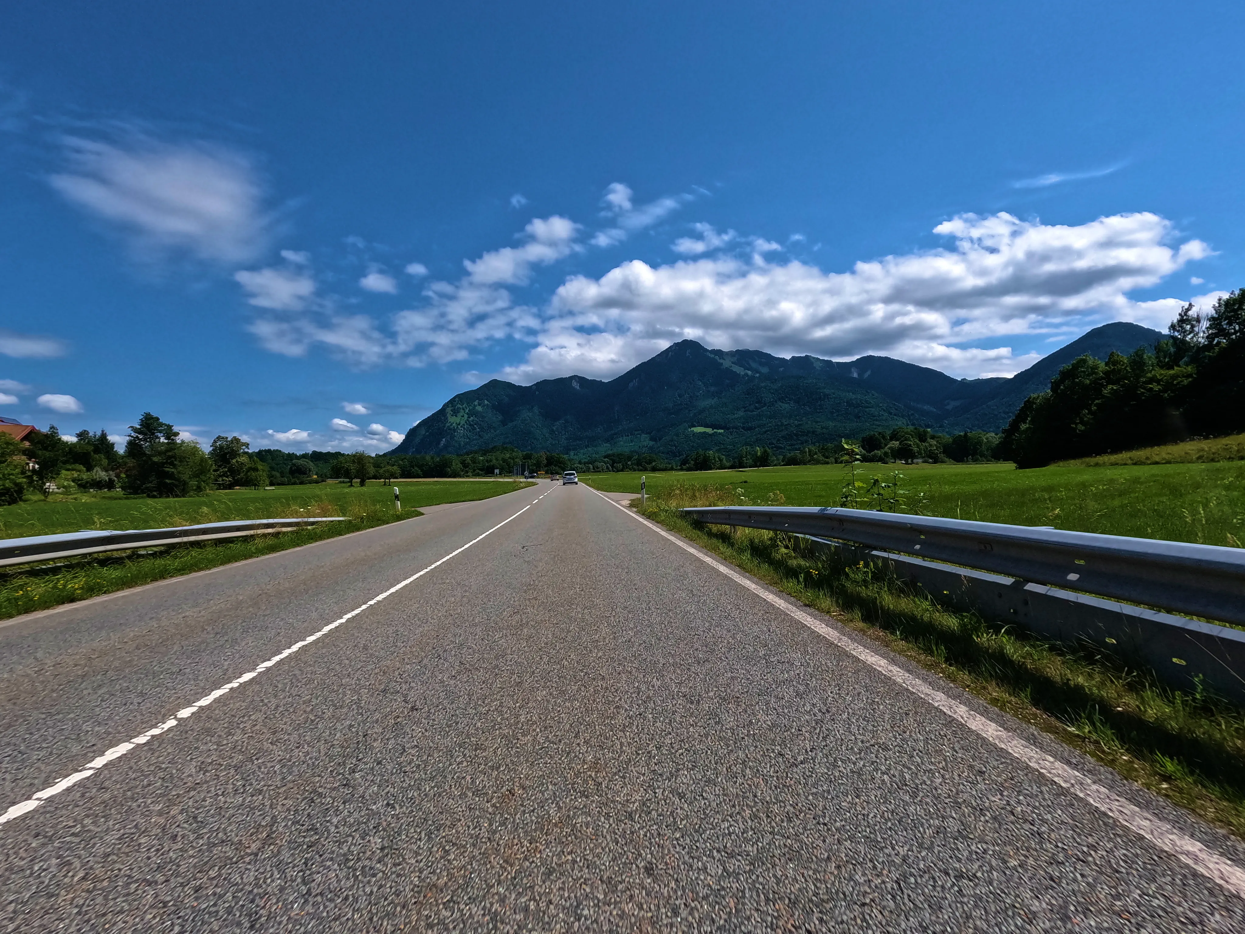 Ich entschied mich bei der Zusammenstellung der Passknacker-Punkte für diese Tour dafür, den Weg bis zum ersten Zwischenziel so weit wie möglich über die Autobahn zu absolvieren. Es war Mittwoch, ich hatte Urlaub, allerdings abends noch einen Termin - daher schnell zum Ziel, dann entspannt zurück. Ich fuhr direkt auf die A99, wechselte auf die A8 und hielt immer Richtung Salzburg. Gegen 7 Uhr war ich am Irschenberg, wie immer ein herrlicher Anblick beim Blick Richtung Osten. Die Grenze nach Österreich überquerte ich um kurz vor 8 Uhr. Kurz darauf geriet ich auf der A10 Richtung Hallein in etwas zähen Verkehr, nach wenigen Minuten ging es aber auch wieder flüssig weiter. Die Autobahn verließ ich bei Kuchl, wo ich, wie immer in Österreich, etwas von der Beschilderung verwirrt war - die Schilder hinterlassen immer kurz den Eindruck, als dürfte man hier nicht die Autobahn verlassen.