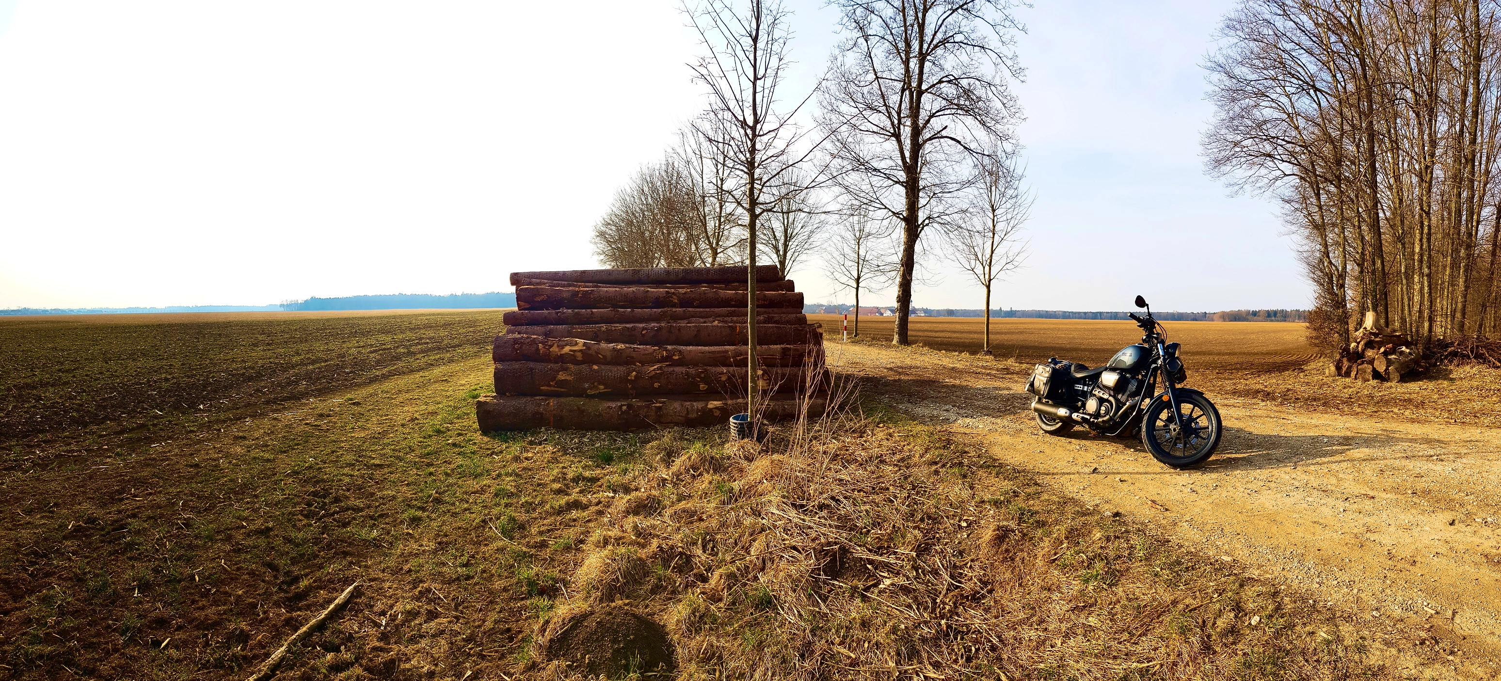 Am Vortag hatte ich mir mit calimoto eine kleine Tour zusammengestellt, um die 80km sollten zum Einstand reichen. Die Landschaft hat noch wenig von Frühling, es sieht alles eher noch winterlich-karg aus.